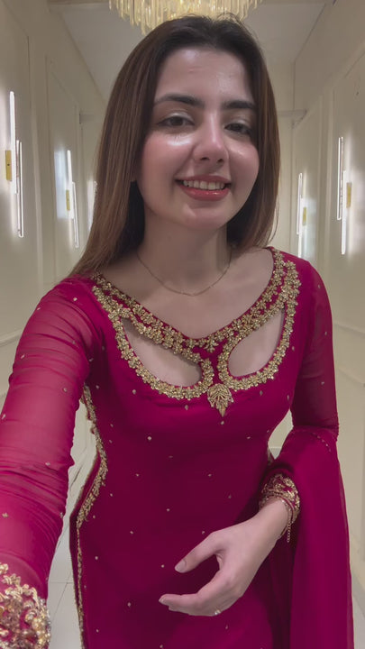 | Sleeves | Sheer full-length sleeves in georgette with elegant sequin embroidery highlights, balancing modern grace with traditional beauty. |