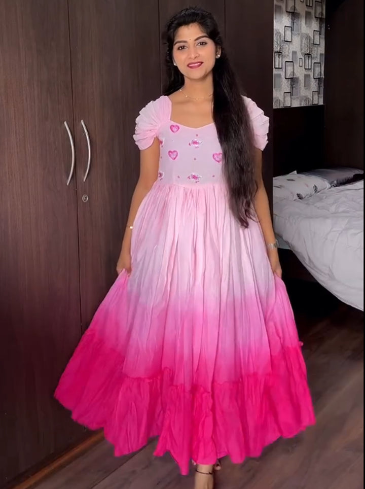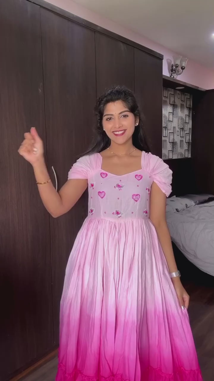 Design/Embroidery: | Hand-embroidered with adorable pink hearts and bird motifs using shiny sequins and thread work. |