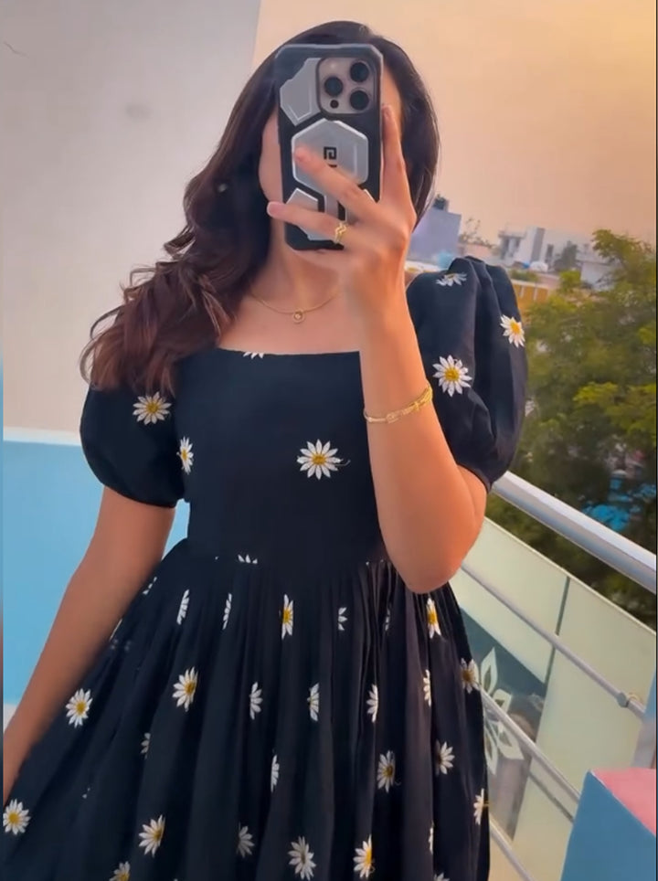 Colors | 1. Deep Black with white & yellow daisy thread embroidery 2. Sky Blue with white & yellow daisy thread embroidery |